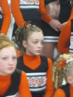 I never thought I'd be one of those Moms putting make-up on my daughter at such a young age, and I did balk at it her first year of cheerleading. As the years have passed and I've seen their performances from the stands, I see that the make-up is a necessity. You can really see their eyes pop with the make-up on, it finishes the look. I'm glad our coach doesn't follow suit with some of the other teams competiting, their make-up is way too much. Glittery eyeshadow, tons of foundation, massive amounts of blush, and bright red lipstick. I think that is unnecessary in my book. Let the talent speak, not the make-up.