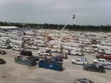 This is a picture of some of the trucks that are at the Houston Horsetrack just waiting for their assignments. Jason said once they hit the border of Texas, you could immediately tell that a hurricane had come through. He said it was like night and day just over the border. They are staying at a hotel that does have power, so at least he won't be sleeping on a FEMA cot this time.